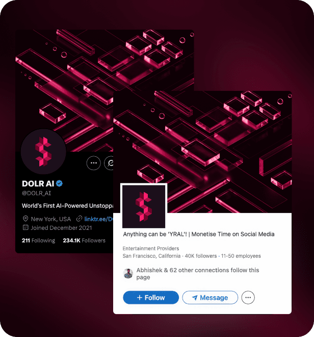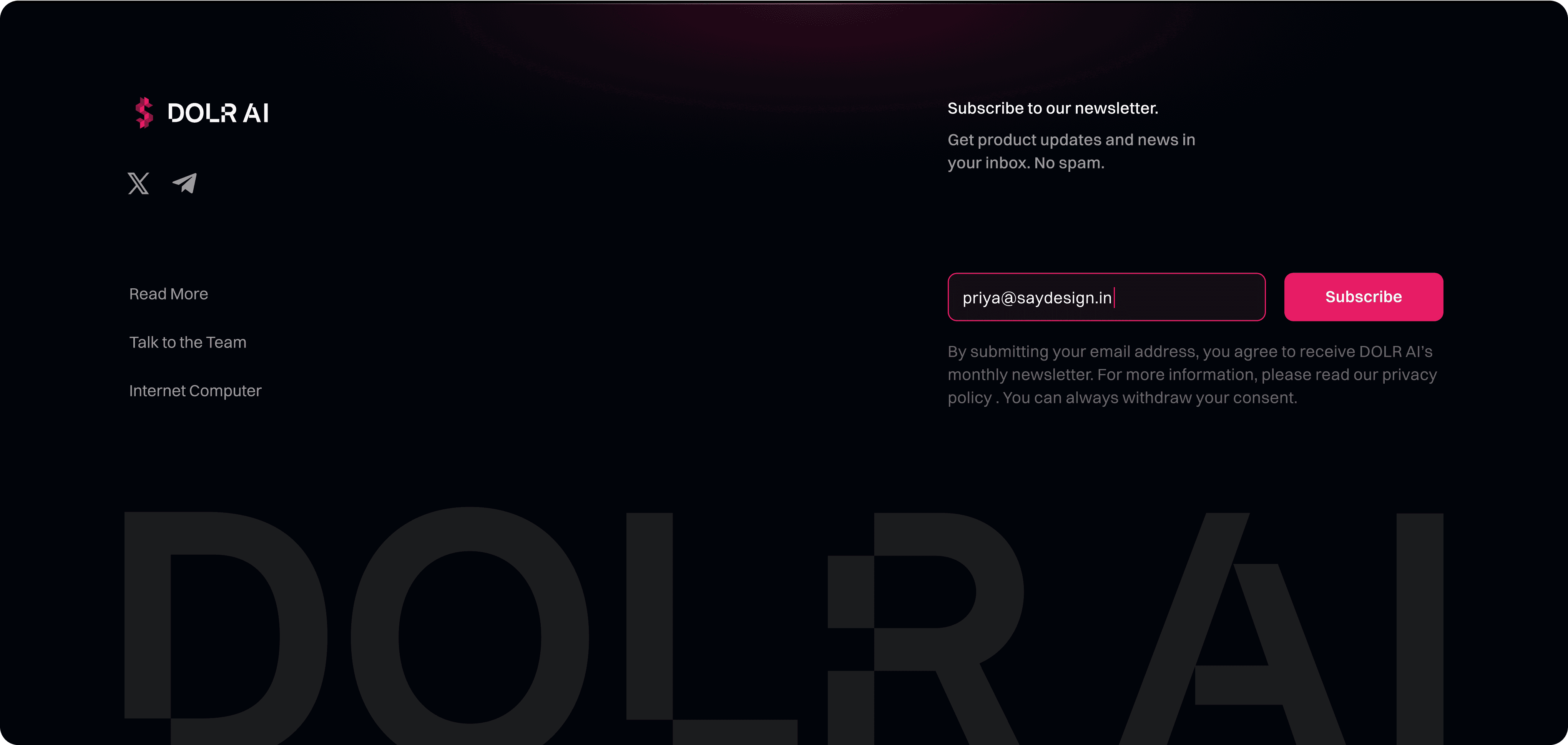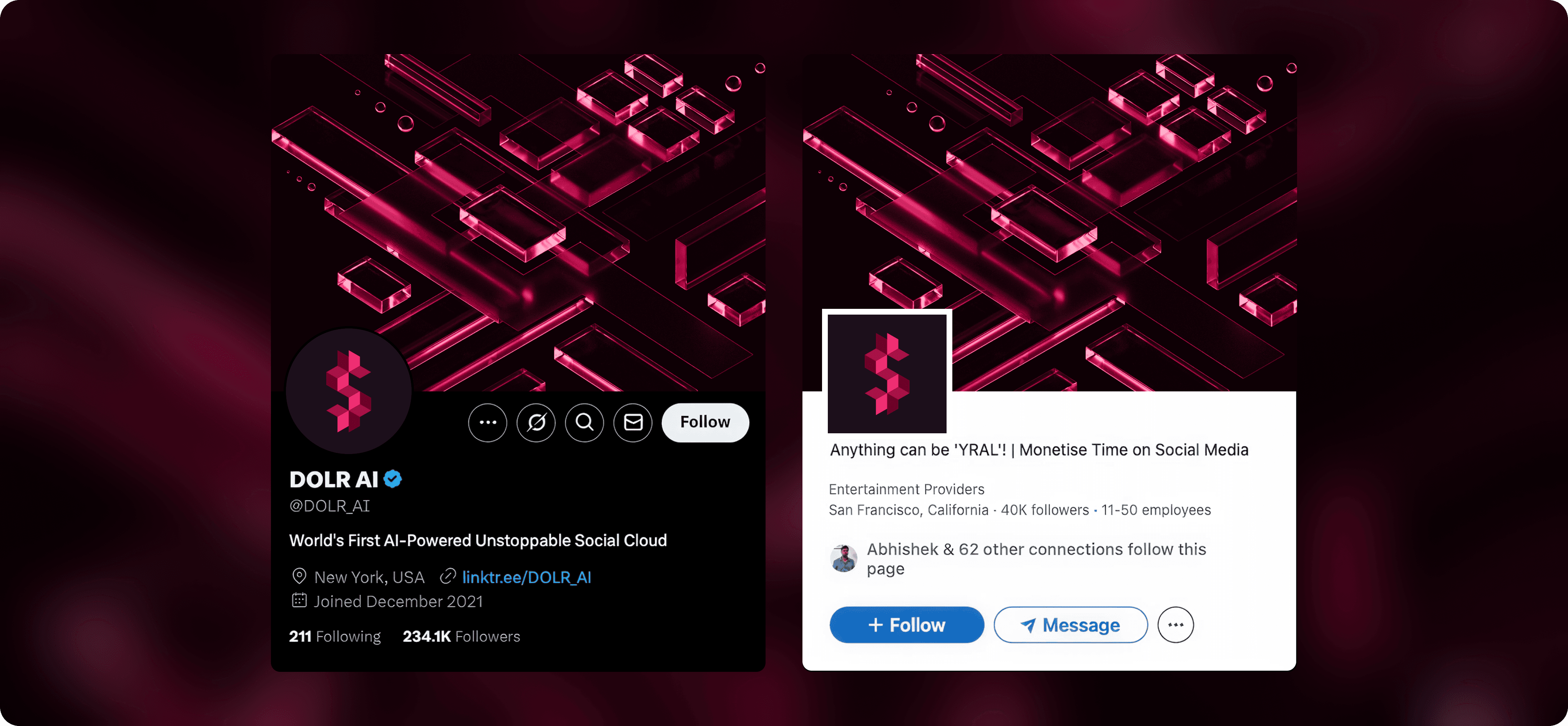 From naming to logo, color system to pitch decks, we built a cohesive identity that set Dolr apart in a crowded AI space. The rebrand gave them instant traction with early adopters on X, LinkedIn and Instagram. There was an overall greater confidence in sales conversations, and a clear voice in the market. Their product and vision were powerful — with a fresh branding, we helped the world sees it that way too.